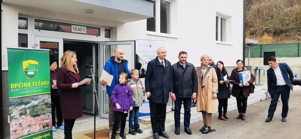 Useljenjem u stambene jedinice u novoizgrađenom stambenom objektu u općini Tešanj, osigurana su stambena rješenja po sistemu neprofitnog socijalnog stanovanja za 21 porodicu.