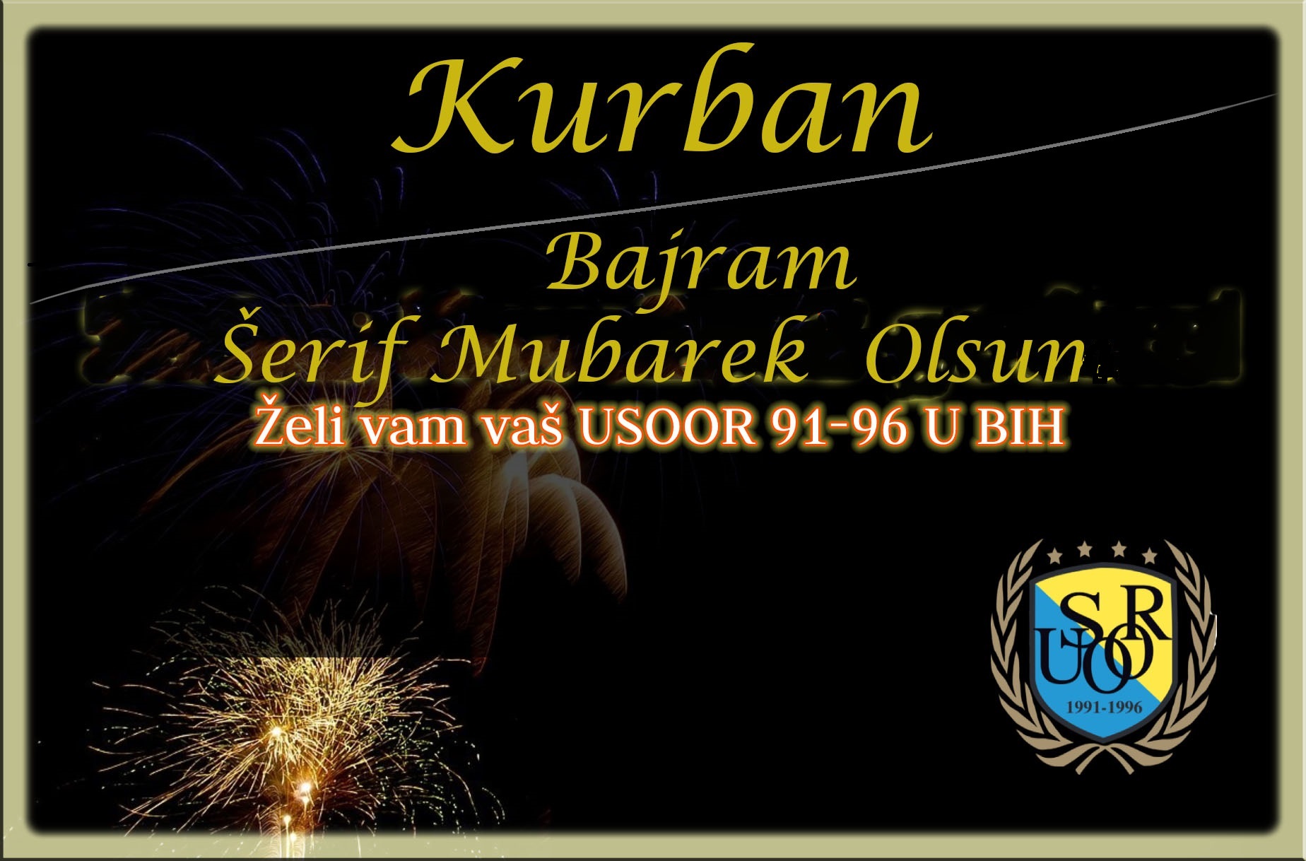 USOOR 91-96 U BIH svim pripadnicima islamske vjeroispovjesti u Bosni i Hercegovini, upućuje iskrene čestitke Bajram Šerif Mubarek Olsun.