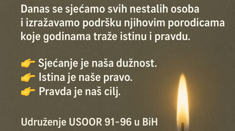 Danas odajemo počast nestalim osobama i djelimo bol sa njihovim porodicama. Sjećanje na njih je  naša dužnost,a potraga za istinom je – naša obaveza.