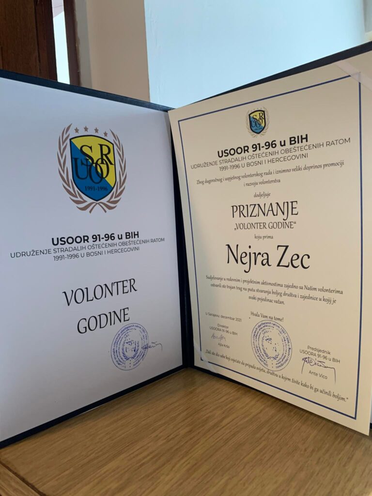 Za Volonterku godine izabrana je mlada studentica Nejra Zec, poklanjajući 560 svojih volonterski sati organizaciji USOOR 91-96 U BIH
