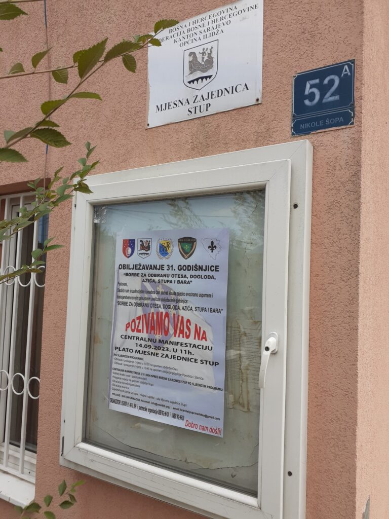 U naselju Stup u općini Ilidža održana manifestacija povodom obilježavanja 32. godišnjice “Borbe za odbranu Otesa, Dogloda, Azića, Stupa i Bara“,jedna od najznačajnijih bitaka za odbranu grada Sarajeva. Polaganjem cvijeća, učenjem Fatihe i minutom šutnje na spomen-obilježju ispred Mjesne zajednice Stup, izgrađenom u znak sjećanja na hrabre borce koji su živote dali za odbranu tog područja i domovine, u organizaciji Udruženje stradalih oštećenih obeštećenih ratom 1991- 1996 u Bosni i Hercegovini Općine Ilidža sa partnerskim organizacijama Udruženje boraca “Branitelji 1992 do 1996 Općine Ilidža” i Udruženjem veterana boraca rata 1992 – 1996 Općine Ilidža obilježena je 32. godišnjica borbe za odbranu Otesa, Dogloda, Azića, Stupa i Bara. Delegacije Udruženja obišle su i položile cvijeće na spomen obilježja Otes, spomen-obilježje Azići, Porobić – Stanić, šehidska mezarja Kovači i stadion Lav, groblje Sveti Josip i Sveti Marko.Na mjestu, gdje su se prije 32 godine vodile žestoke borbe za odbranu ovih naselja, okupile su se brojne delegacije, porodice šehida i poginulih boraca, saborci, predstavnici boračkih udruženja, prestavnici Mjesnih zajednica Stupa, saborci, prestavnici Općine Ilidža predvođeni načelnikom Nerminom Muzurom, prestavnici Kantonalne službe za boračka pitanja Kantona Sarajevo, učenici i predstavnici Treće i Šeste osnovne škole Ilidža , učenici i prestavnici Srednja tehnička škola grafičkih tehnologija dizajna i multimedije Ilidža i mnogi drugi.